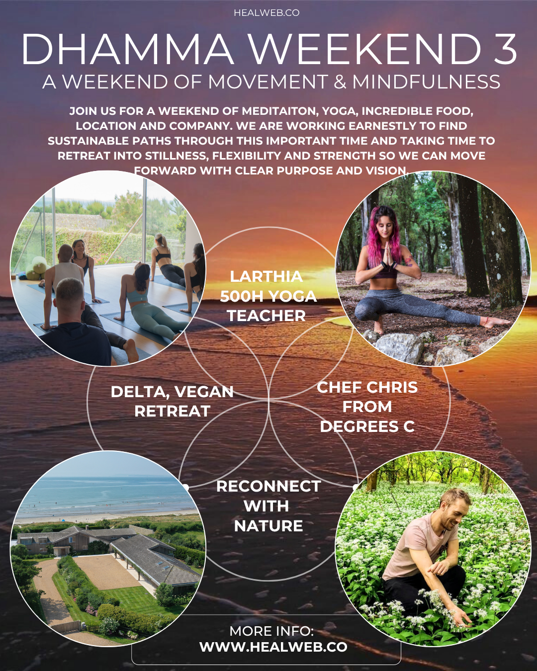 Join us for a weekend of Dhamma practice and exploration of regenerative, consciousness-driven projects at Green Campus Delta. Throughout the weekend, we will offer a steady rhythm of meditation, a range of yoga practices with Larthia - our skilled yoga teacher, nourishing plant-based food by Chef Chris Nelson, and time in nature, hot tubs, and sauna. Evenings will feature live music and fires on the beach, creating space for connection, reflection, and shared joy.
